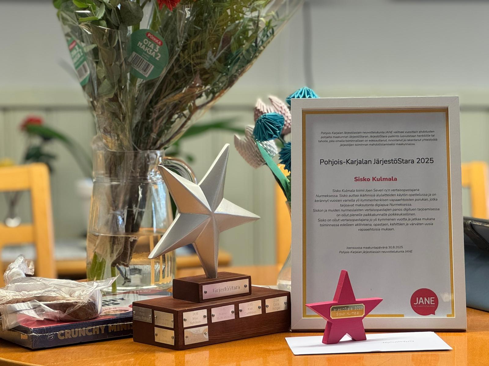 Vuoden 2025 JärjestöStara -palkinto myönnettiin 30.8. vietetyssä Pohjois-Karjalan maakuntapäivässä nurmeslaiselle Joen Severin vapaaehtoisohjaajalle Sisko Kulmalalle. Palkinto käytiin luovuttamassa Siskolle Joen Severin vertaisohjaajatapaamisessa 11.9.2025 Nurmeksen Ystävänpysäkillä